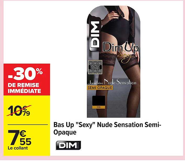 Découvrez les bas Dim Up "Sexy" Nude Sensation Semi-Opaque, le choix idéal pour allier élégance et confort. Actuellement en promotion, cette offre vous permet de profiter d'une réduction de 30% sur un produit de qualité, parfait pour apporter une touche de sensualité à vos tenues. Ne manquez pas cette occasion, valable jusqu'au 3 novembre 2025.