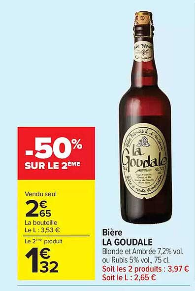 Découvrez dès maintenant la offre Bière LA GOUDALE dans le catalogue de Carrefour. Cette offre est valable du 07/01/2025 au 19/01/2025.