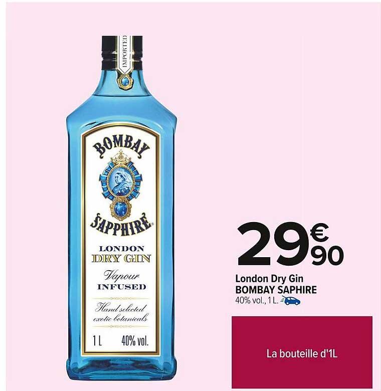 Découvrez l'offre de Bombay Sapphire London Dry Gin chez Carrefour! Cette offre fantastique est maintenant disponible dans le nouveau catalogue de Carrefour. Profitez de cette occasion et économisez considérablement sur votre achat.