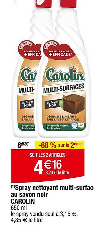 Découvrez l'offre de Carolin Multi-Surfaces Au Savon Noir chez Carrefour! Cette offre fantastique est maintenant disponible dans le nouveau catalogue de Carrefour. Profitez de cette occasion et économisez considérablement sur votre achat.