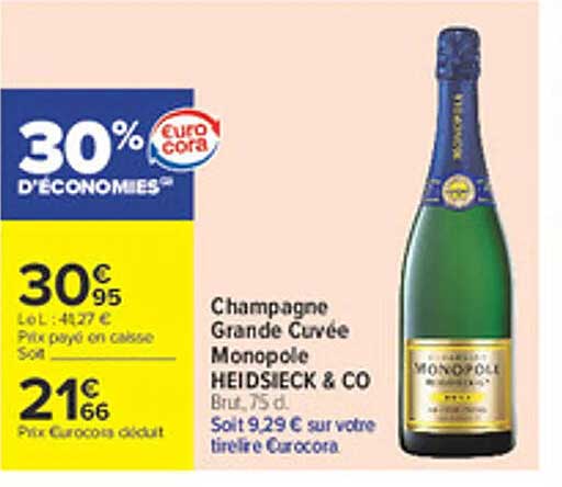 Offre de Champagne Grande Cuvée Monopole Heidsieck & Co chez Carrefour