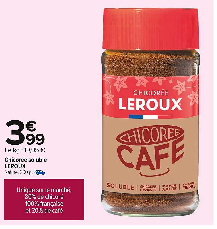 Offre de Chicorée Soluble Leroux chez Carrefour