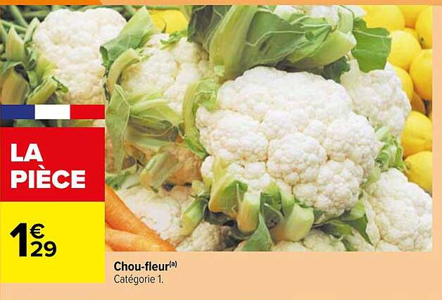 Découvrez l'offre de Chou-Fleur chez Carrefour! Cette offre fantastique est maintenant disponible dans le nouveau catalogue de Carrefour. Profitez de cette occasion et économisez considérablement sur votre achat.