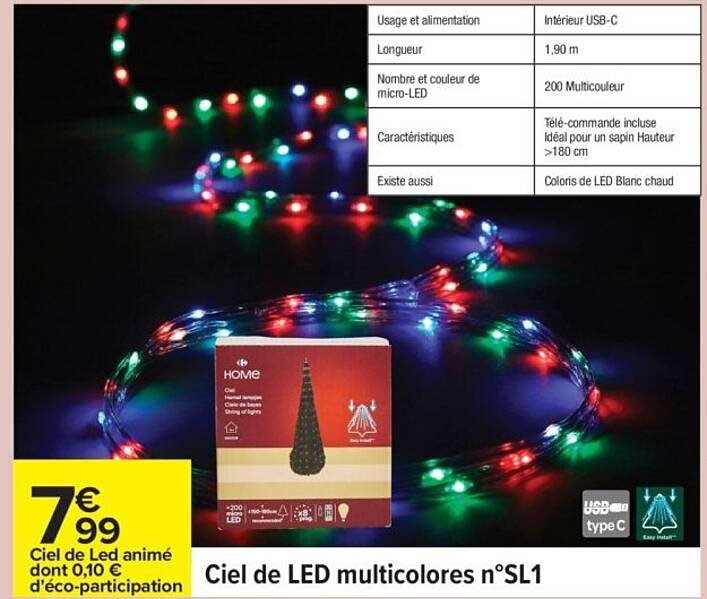 Découvrez dès maintenant la offre Ciel de LED multicolores n°SL1 dans le catalogue de Carrefour. Cette offre est valable du 11/11/2025 au 24/11/2025.