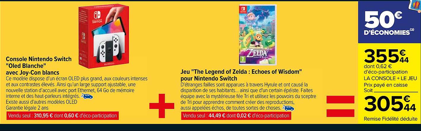 Offre de Console Nintendo Switch "Oled Blanche" Avec Joy-Con Blancs Jeu "The Legend Of Zelda : Echoes Of Wisdom" Pour Nintendo Switch chez Carrefour
