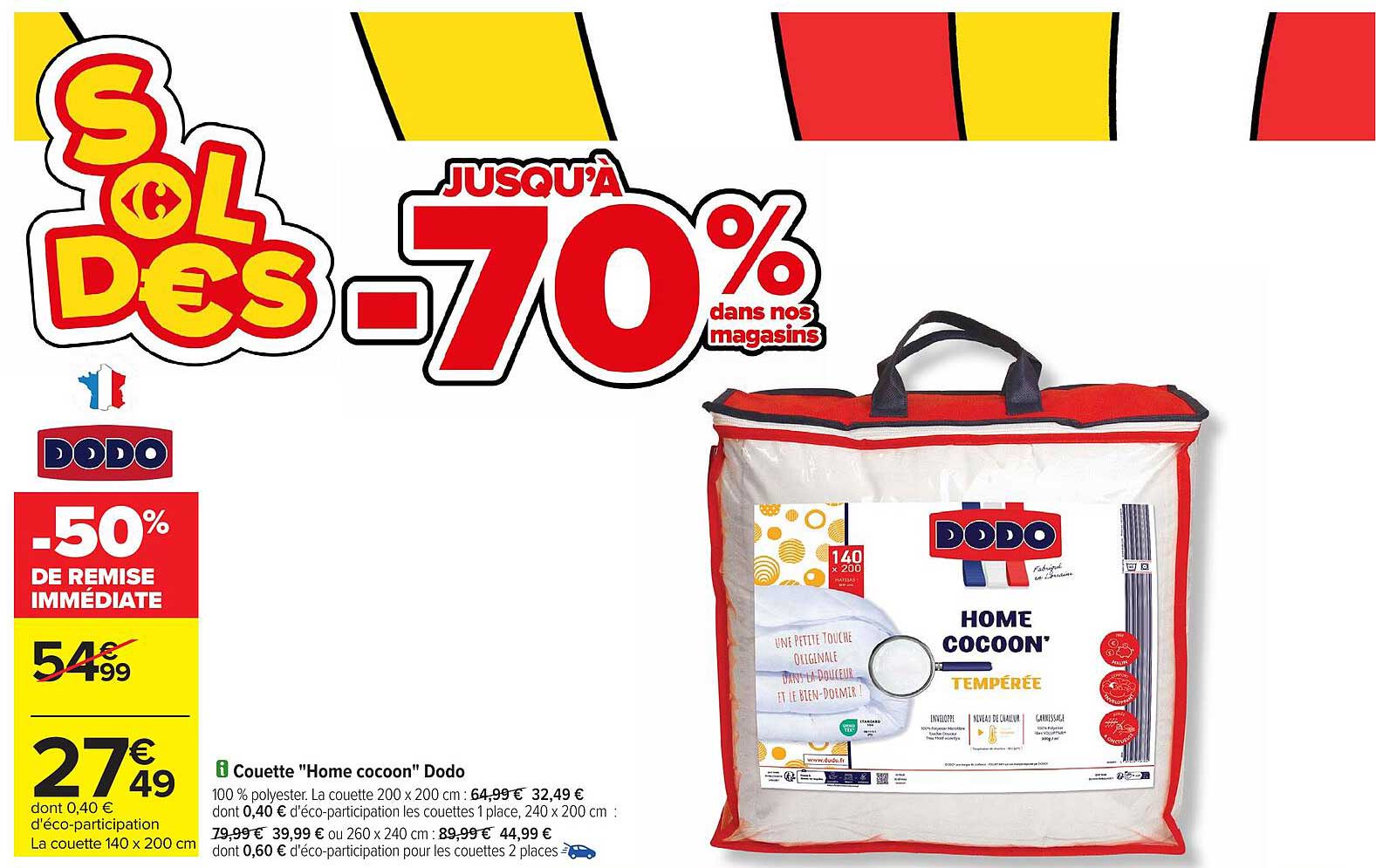 Découvrez l'offre de Couette "Home Cocoon" Dodo chez Carrefour! Cette offre fantastique est maintenant disponible dans le nouveau catalogue de Carrefour. Profitez de cette occasion et économisez considérablement sur votre achat.