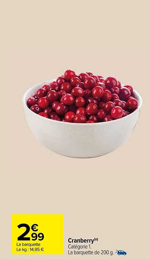 Découvrez l'offre de Cranberry chez Carrefour! Cette offre fantastique est maintenant disponible dans le nouveau catalogue de Carrefour. Profitez de cette occasion et économisez considérablement sur votre achat.