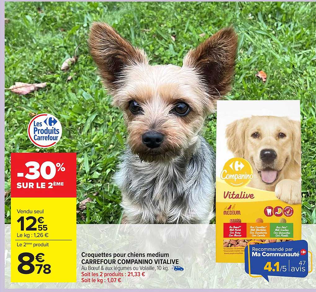 Offre de Croquettes Pour Chiens Medium Carrefour Companino Vitalive chez Carrefour