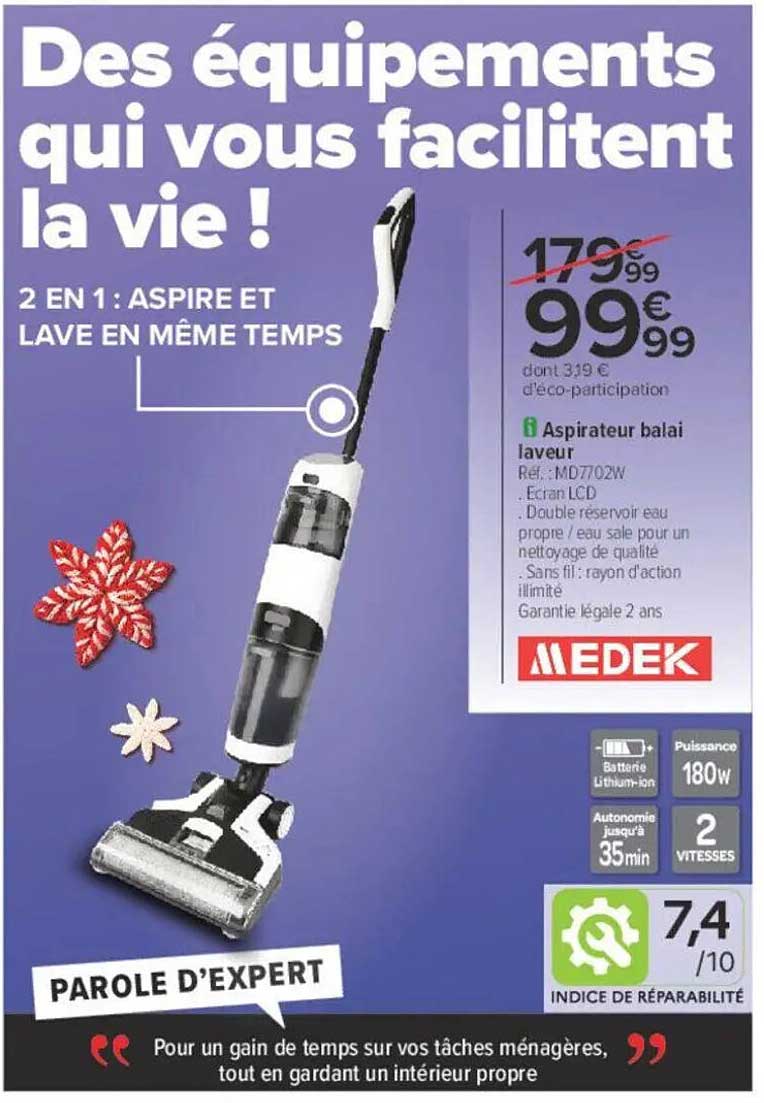 Découvrez cette offre incroyable sur un aspirateur balai laveur, parfait pour simplifier vos tâches ménagères. Avec sa fonction 2 en 1, cet appareil aspire et lave simultanément vos sols. Cette promotion est valable du 2 décembre au 24 décembre 2025, une occasion à ne pas manquer pour rendre votre quotidien plus facile !