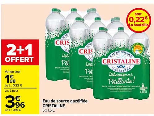 Offre de Eau De Source Gazéifiée Cristaline 6 X 1.5 L chez Carrefour