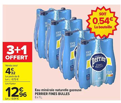 Ne manquez pas cette excellente promotion sur l'eau minérale PERRIER FINES BULLES ! Idéale pour étancher votre soif tout en ajoutant une touche pétillante à vos repas, cette offre est valable du 23 octobre au 10 novembre 2025. Optez pour un pack de 6 bouteilles et profitez d'une eau de qualité supérieure.