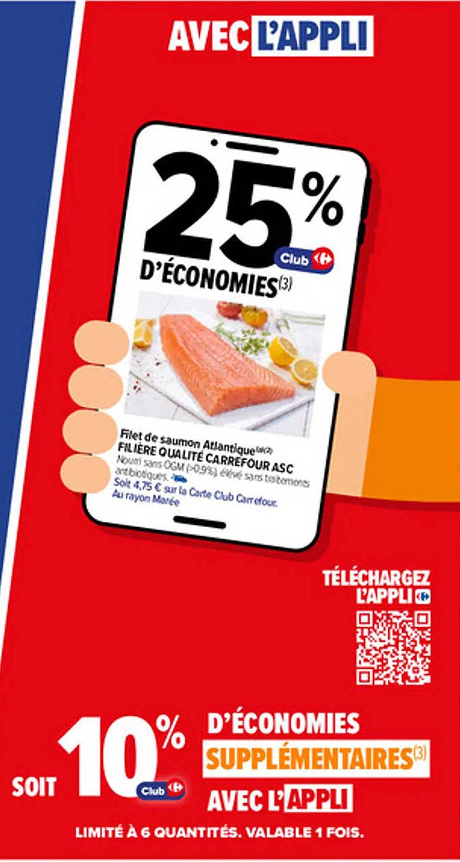Habituellement, ce filet de saumon est vendu à un prix plus élevé. Avec cette offre, vous pouvez le retrouver à seulement 4,75 € sur la Carte Club Carrefour, ce qui représente une économie significative. Profitez de cette occasion pour découvrir ou redécouvrir un produit de qualité à un prix défiant toute concurrence.