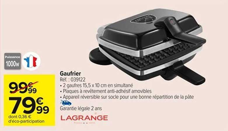 Régalez-vous avec le gaufrier Lagrange, l'appareil incontournable pour concocter de délicieuses gaufres croustillantes et moelleuses. Avec cette promotion exclusive, transformez vos brunchs en véritables fêtes gourmandes. Disponible ici jusqu'au 28 avril 2025, c'est le moment parfait pour profiter de cette offre anticipée de printemps !