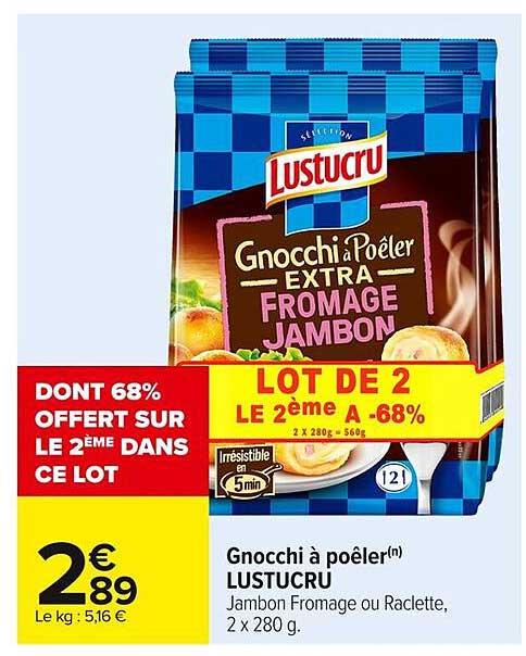 Découvrez dès maintenant la offre Gnocchi à poêler(n) LUSTUCRU dans le catalogue de Carrefour. Cette offre est valable du 18/03/2025 au 31/03/2025.