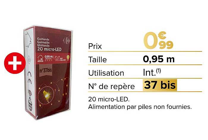 Découvrez l'offre de Guirlande 20 Micro-Led chez Carrefour! Cette offre fantastique est maintenant disponible dans le nouveau catalogue de Carrefour. Profitez de cette occasion et économisez considérablement sur votre achat.