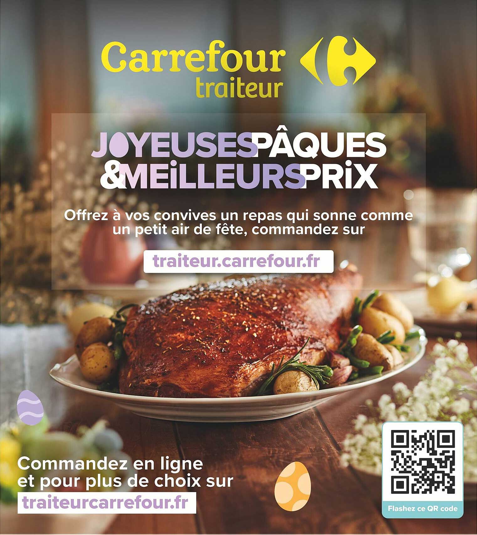 Préparez-vous à célébrer Pâques avec une offre irrésistible de Carrefour ! Cette promotion vous permet d'offrir à vos convives un repas festif sans vous ruiner. Imaginez un repas savoureux et réconfortant, préparé avec soin, qui ravira vos invités et égayera votre table pour cette occasion spéciale.