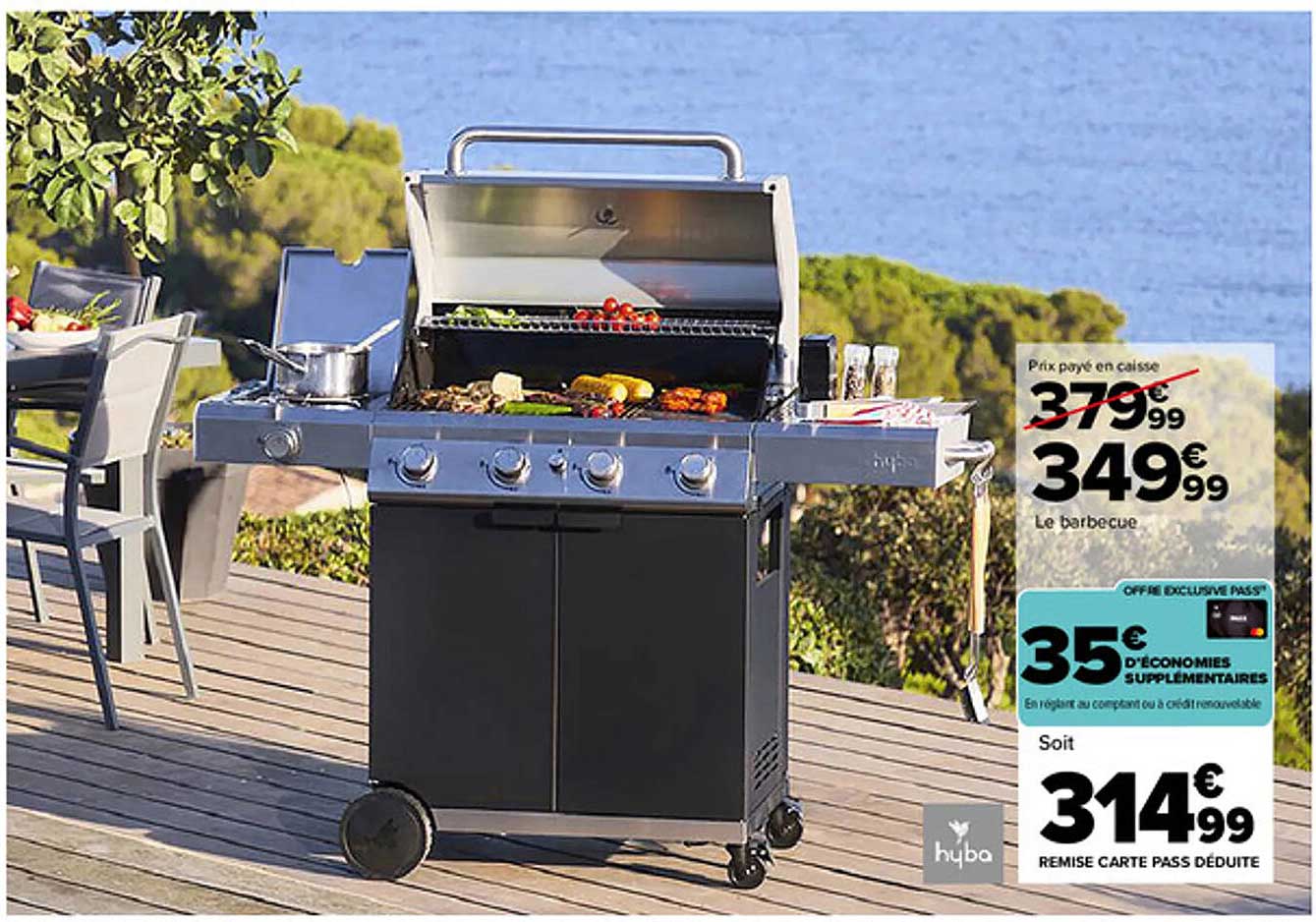 Avec un prix de 349,99 € au lieu de 379,99 €, vous réalisez une économie intéressante. En plus de cela, vous bénéficiez d'une remise de 35 € si vous réglez par carte Pass, ce qui ramène le prix à seulement 314,99 €. C'est une occasion à ne pas manquer pour vous équiper d'un barbecue de qualité sans vous ruiner.