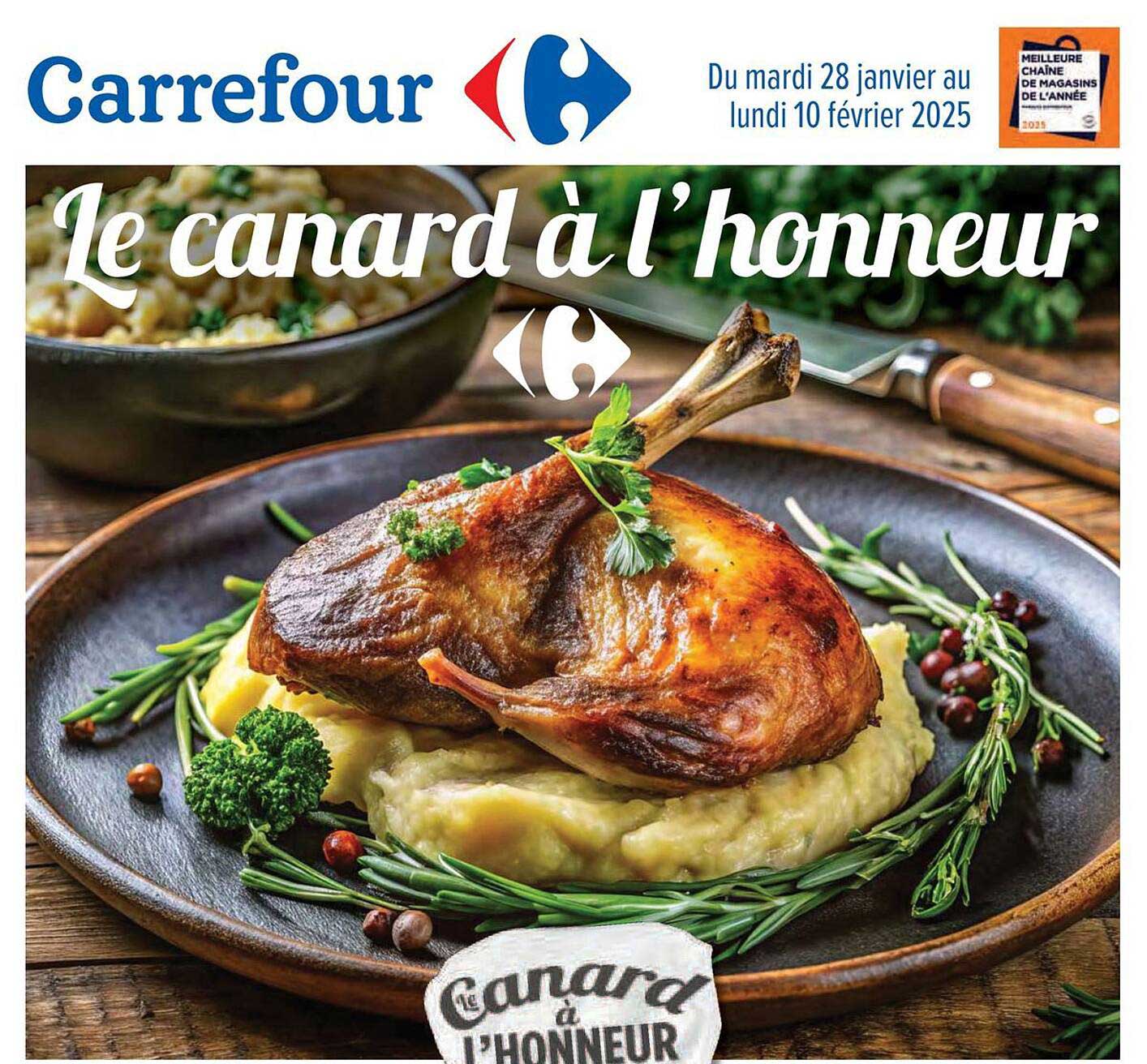 Découvrez dès maintenant la offre Le canard à l'honneur dans le catalogue de Carrefour. Cette offre est valable du 28/01/2025 au 10/02/2025.