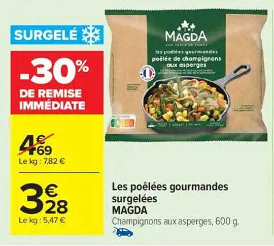 Découvrez dès maintenant la offre Les poêlées gourmandes surgelées MAGDA Champignons aux asperges, 600 g. dans le catalogue de Carrefour. Cette offre est valable du 11/04/2025 au 21/04/2025.