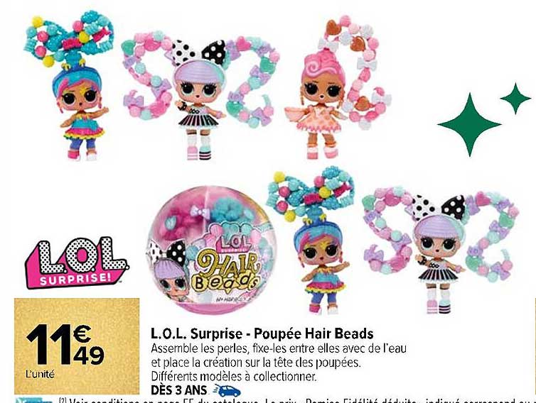 Découvrez l'offre de L.o.l. Surprise - Poupée Hair Beads chez Carrefour! Cette offre fantastique est maintenant disponible dans le nouveau catalogue de Carrefour. Profitez de cette occasion et économisez considérablement sur votre achat.