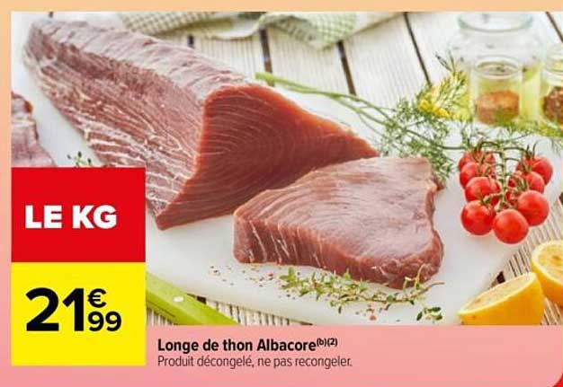 Découvrez dès maintenant la offre Longe de thon Albacore dans le catalogue de Carrefour. Cette offre est valable du 19/09/2025 au 21/09/2025.