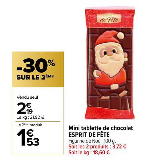 Découvrez l'offre de Mini Tablette De Chocolat Esprit De Fête chez Carrefour! Cette offre fantastique est maintenant disponible dans le nouveau catalogue de Carrefour. Profitez de cette occasion et économisez considérablement sur votre achat.