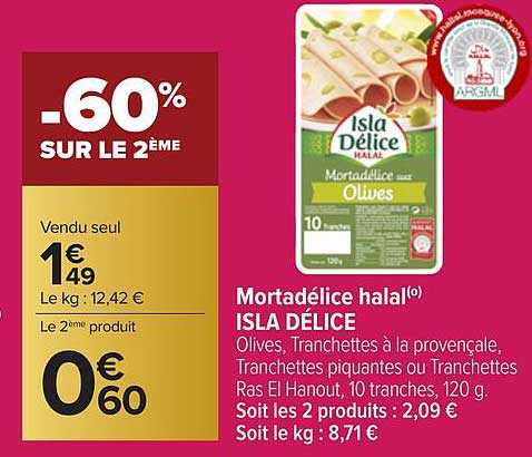 Offre de Mortadélice Halal Isla Délice chez Carrefour