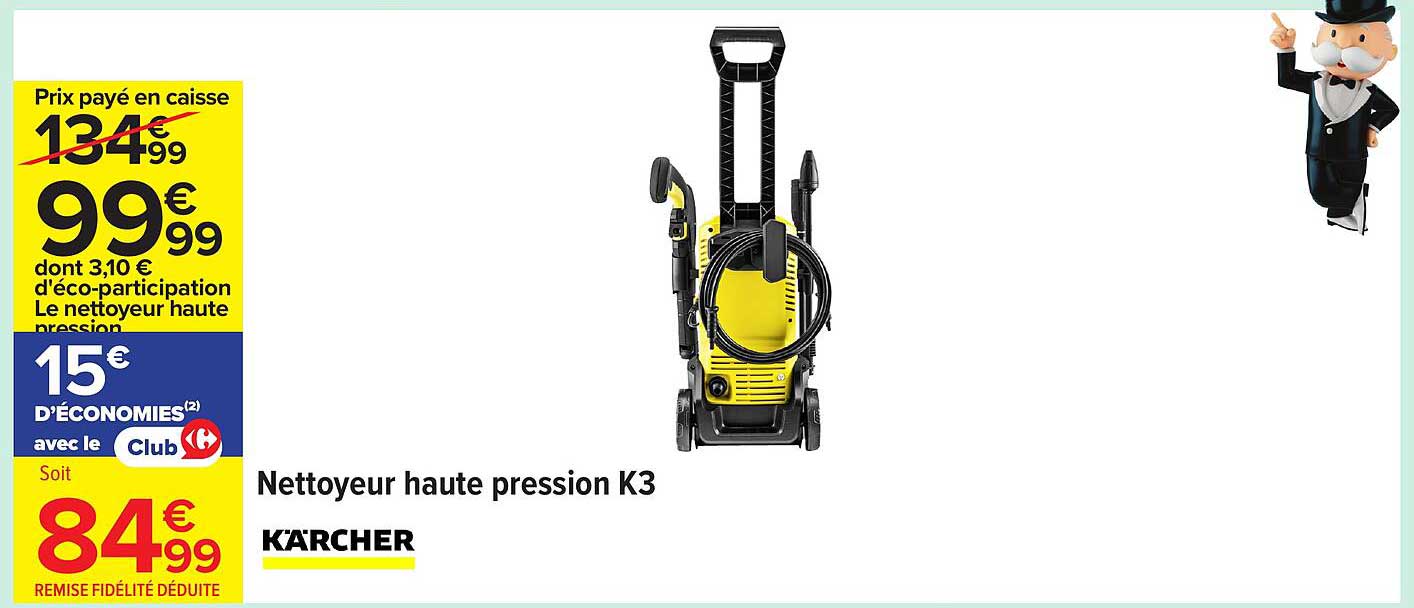 Découvrez l'offre exceptionnelle sur le Nettoyeur haute pression K3 de Kärcher, une véritable alliée pour le nettoyage efficace de votre espace extérieur. Profitez d'une réduction significative et simplifiez vos tâches d'entretien. Avec ses caractéristiques performantes, vous allez enfin dire adieu à la saleté tenace !