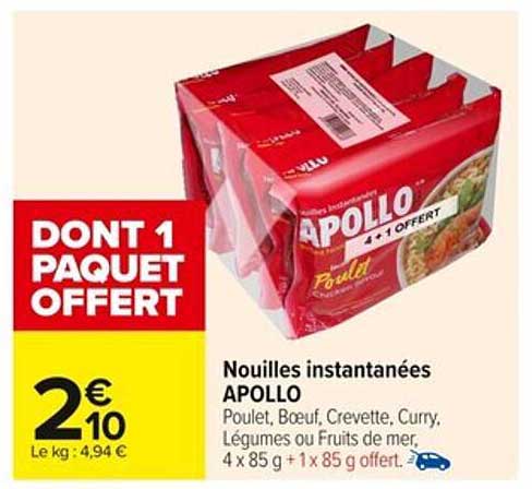 Découvrez dès maintenant la offre Nouilles instantanées APOLLO dans le catalogue de Carrefour. Cette offre est valable du 15/04/2025 au 28/04/2025.