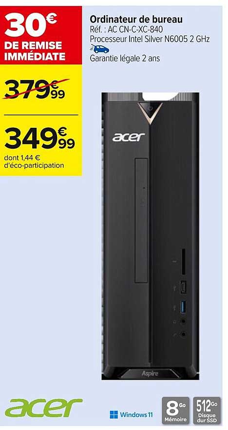 Découvrez dès maintenant la offre Ordinateur de bureau dans le catalogue de Carrefour. Cette offre est valable du 18/02/2025 au 03/03/2025.