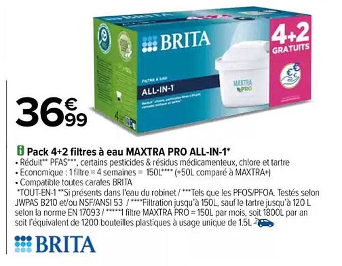 Offre de Pack 4+2 Filtres À Eau Maxtra Pro All-In-1* chez Carrefour