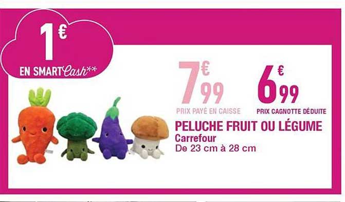 Découvrez l'offre de Peluche Fruit Ou Légume chez Carrefour! Cette offre fantastique est maintenant disponible dans le nouveau catalogue de Carrefour. Profitez de cette occasion et économisez considérablement sur votre achat.