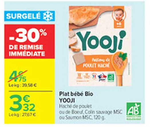 Découvrez l'offre de Plat Bébé Bio Yooji chez Carrefour! Cette offre fantastique est maintenant disponible dans le nouveau catalogue de Carrefour. Profitez de cette occasion et économisez considérablement sur votre achat.