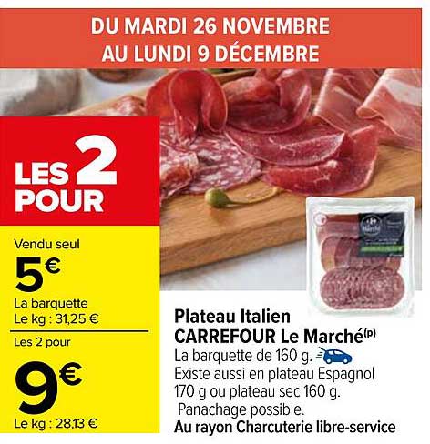 Découvrez dès maintenant la offre Plateau Italien dans le catalogue de Carrefour. Cette offre est valable du 26/11/2024 au 09/12/2024.