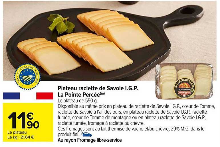Découvrez l'offre de Plateau Raclette De Savoie I.g.p. La Pointe Percée chez Carrefour! Cette offre fantastique est maintenant disponible dans le nouveau catalogue de Carrefour. Profitez de cette occasion et économisez considérablement sur votre achat.