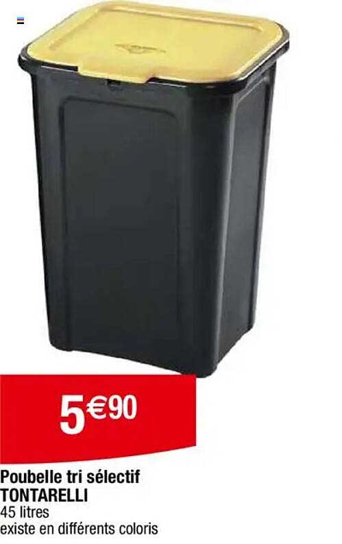 Profitez d'une occasion en or pour vous équiper d'une poubelle tri sélectif TONTARELLI de 45 litres, idéale pour faciliter le recyclage et contribuer à la protection de l'environnement. Avec un prix d'appel exceptionnel de seulement 5€90, il n'y a jamais eu de meilleur moment pour faire le choix du tri.