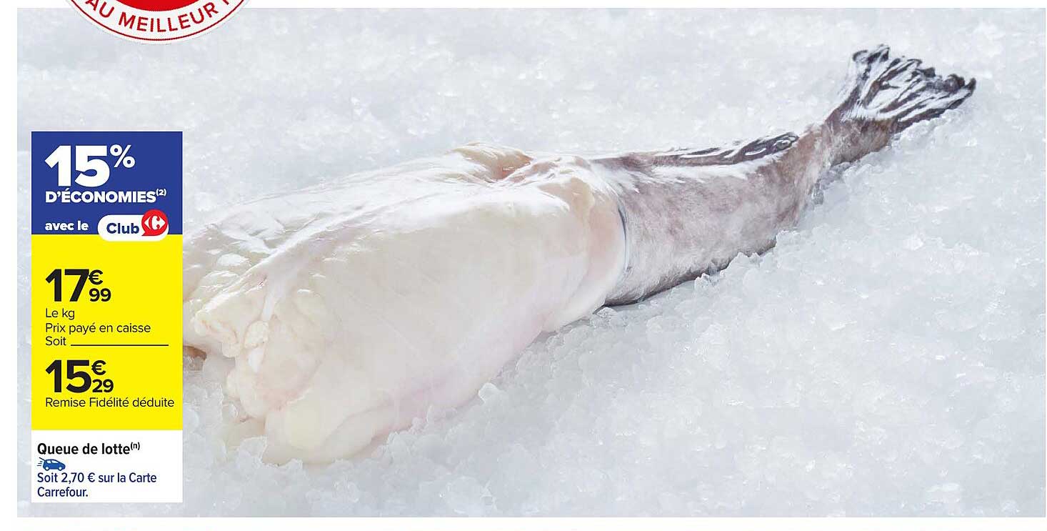 Découvrez l'offre de Queue De Lotte chez Carrefour! Cette offre fantastique est maintenant disponible dans le nouveau catalogue de Carrefour. Profitez de cette occasion et économisez considérablement sur votre achat.