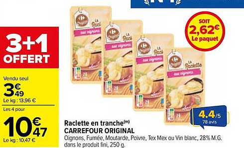 Découvrez le Raclette En Tranche(M) Carrefour Original