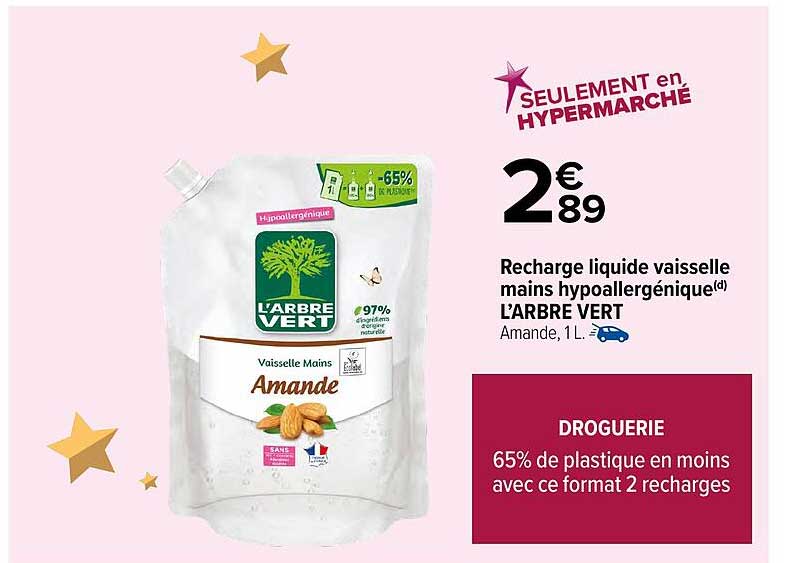 Offre de Recharge Liquide Vaisselle Mains Hypoallergénique L'arbre Vert Amande chez Carrefour