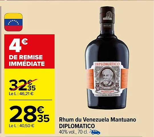 Offre de Rhum Du Venezuela Mantuano Diplomatico chez Carrefour