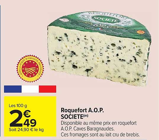 Découvrez l'offre de Roquefort A.o.p. Societe(M) chez Carrefour! Cette offre fantastique est maintenant disponible dans le nouveau catalogue de Carrefour. Profitez de cette occasion et économisez considérablement sur votre achat.