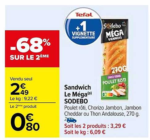 Offre de Sandwich Le Méga Sodebo chez Carrefour
