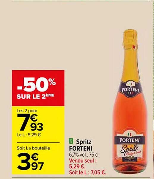 Découvrez l'offre de Spritz Forteni chez Carrefour! Cette offre fantastique est maintenant disponible dans le nouveau catalogue de Carrefour. Profitez de cette occasion et économisez considérablement sur votre achat.