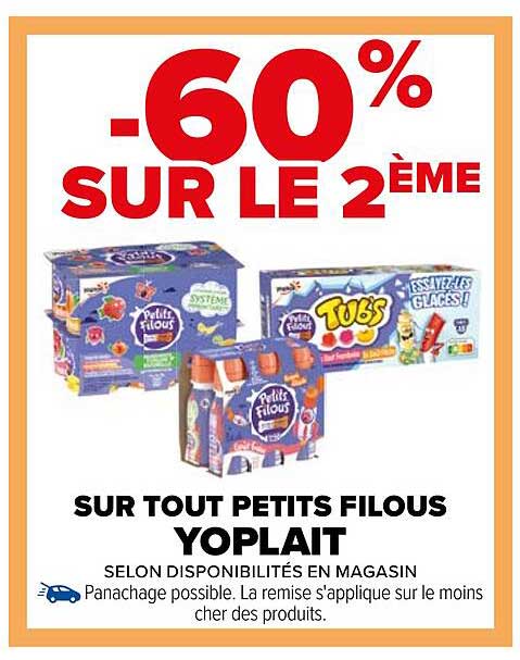Découvrez l'offre de Sur Tout Petits Filous Yoplait chez Carrefour! Cette offre fantastique est maintenant disponible dans le nouveau catalogue de Carrefour. Profitez de cette occasion et économisez considérablement sur votre achat.