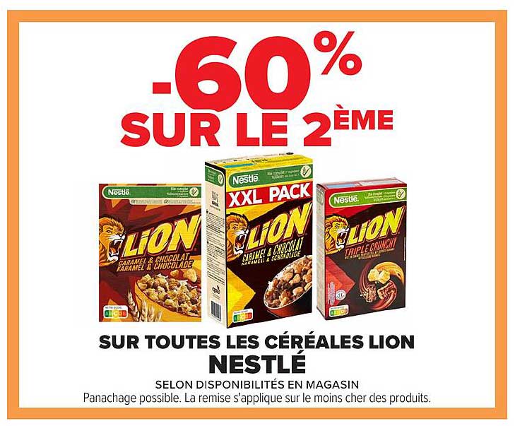 Découvrez l'offre de Sur Toutes Les Céréales Lion Nestlé chez Carrefour! Cette offre fantastique est maintenant disponible dans le nouveau catalogue de Carrefour. Profitez de cette occasion et économisez considérablement sur votre achat.