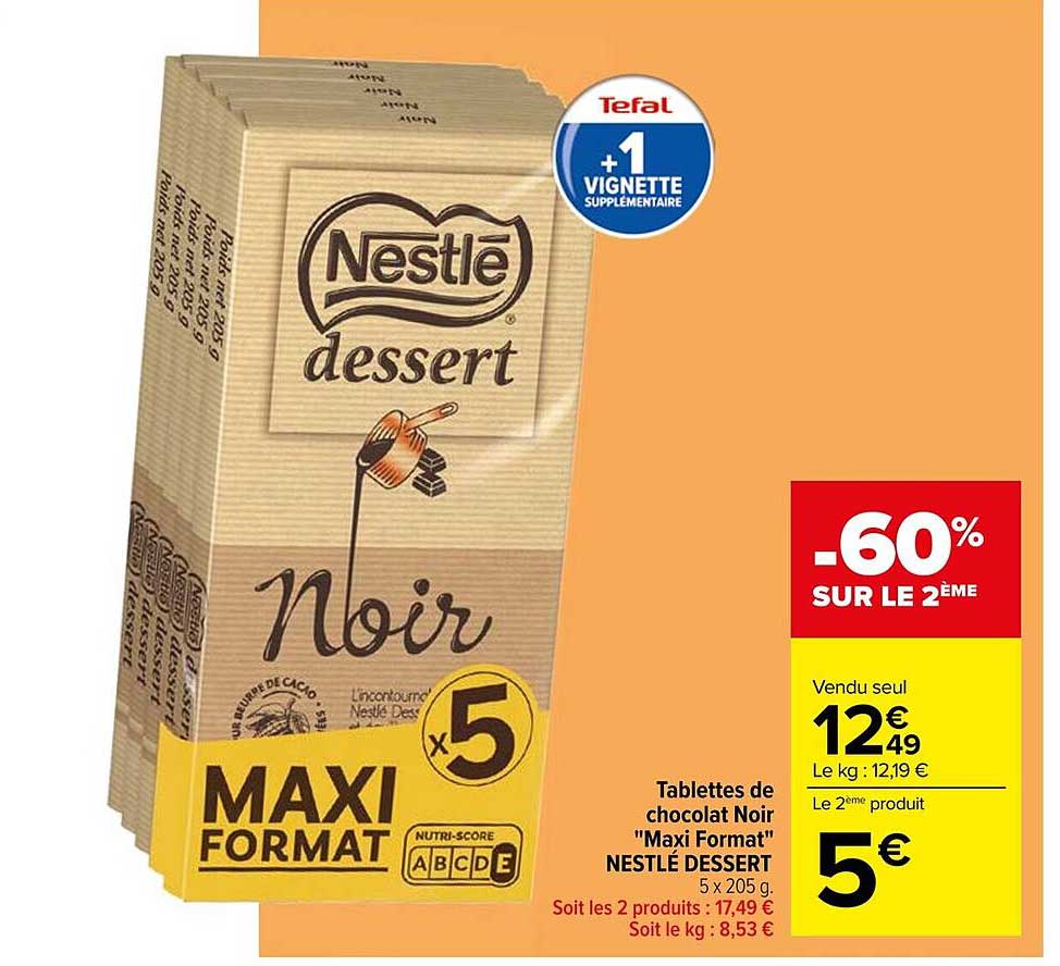 Découvrez l'offre de Tablettes De Chocolat Noir "Maxi Format" Nestlé Dessert chez Carrefour! Cette offre fantastique est maintenant disponible dans le nouveau catalogue de Carrefour. Profitez de cette occasion et économisez considérablement sur votre achat.