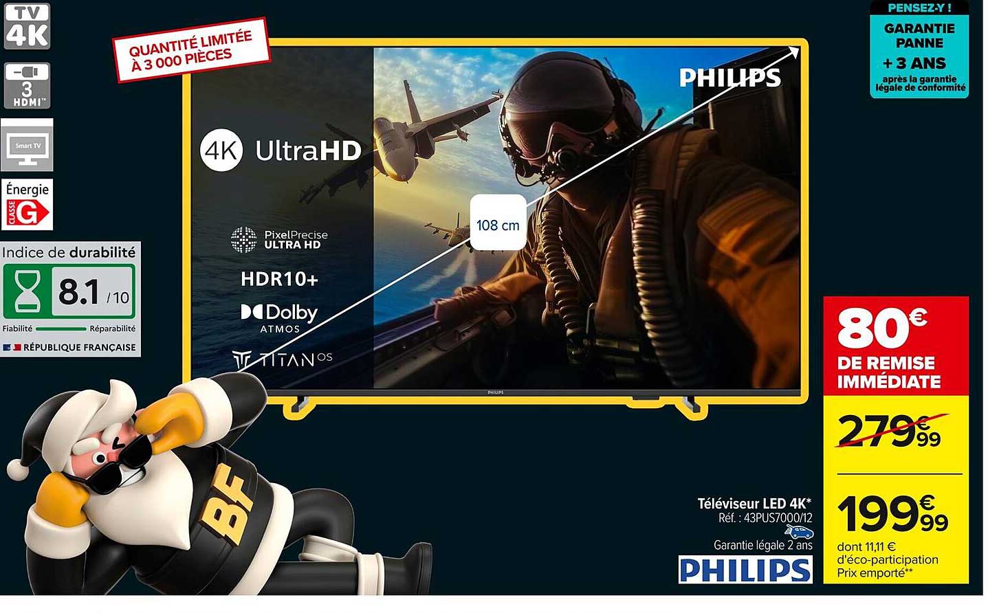Découvrez dès maintenant la offre Téléviseur LED 4K dans le catalogue de Carrefour. Cette offre est valable du 18/11/2025 au 01/12/2025.