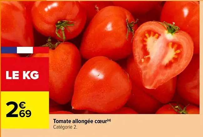 Découvrez notre promotion exceptionnelle sur la tomate allongée cœur chez Carrefour, valable du 2025-09-05 au 2025-09-07. Ce fruit savoureux et juteux est un incontournable de votre cuisine, parfait pour agrémenter vos plats ou vos salades. Profitez de cette offre pour ajouter une touche de fraîcheur à vos repas tout en réalisant des économies !