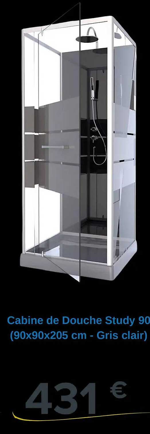 Découvrez la Cabine de Douche Study, un incontournable pour transformer votre salle de bains en un espace élégant et moderne. Profitez de cette offre spéciale valable du 5 novembre au 1er décembre 2025. Avec ses dimensions optimales, cette cabine de douche s'adapte parfaitement à tous les types de salles de bains, qu'elles soient spacieuses ou plus compactes.