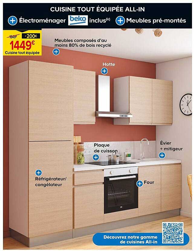 Transformez votre cuisine grâce à cette offre exceptionnelle de Castorama ! La cuisine tout équipée All-In est conçue pour répondre à tous vos besoins culinaires. Avec des électroménagers inclus et des meubles pré-montés, cette solution clé en main vous permettra de gagner du temps tout en embellissant votre intérieur. Profitez de cette offre valable jusqu'au 3 novembre 2025 !